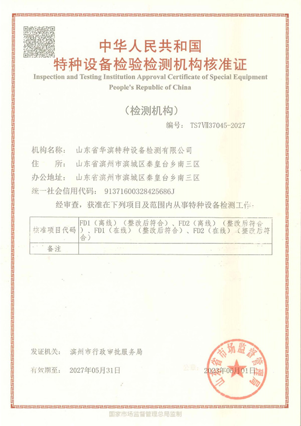 您好,歡迎訪問山東省華濱特種設備檢測有限公司官網!
